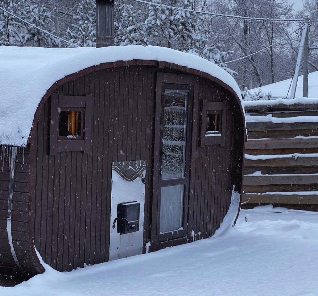 Теперь на территории дома А-фрейм "Весна" доступен банный чан на дровах!