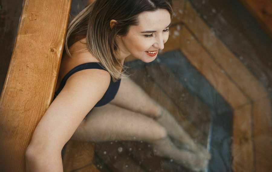 Блаженство и расслабление горячего чистого источника среди прохлады.