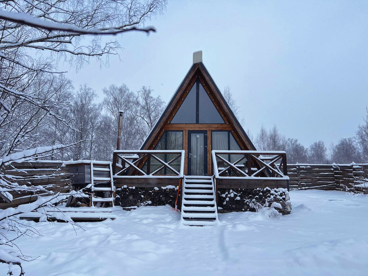 Теперь на территории дома А-фрейм "Весна" доступен банный чан на дровах!
